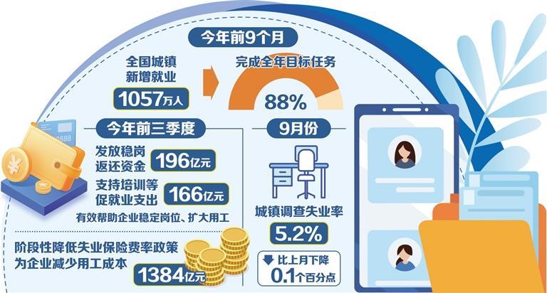 工作进展情况:上半年,全国城镇新增就业695万人,完成全年目标任务的58%。6月份全国城镇调查失业率为5.0%,与去年同期持平。就业形势总体平稳。一是就业增量政策加速出台落实。国办印发进一步加大稳就业政策支持力度的通知,出台七个方面政策举措,明确提高失业保险稳岗返还比例、阶段性缓缴社保费、强化技能培训等政策,着力稳就业、稳企业、稳市场、稳预期。支持企业稳岗扩岗,制定加力岗位挖潜扩容、支持重点群体就业创业实施方案,细化岗位开发任务。加大金融助企稳岗扩岗力度,将小微企业最高授信额度提高至5000万元,对个人最高授信额度1000万元。扩大一次性扩岗补助政策范围。延续实施国企增人增资政策期限至2026年底。上半年,失业保险降费率为企业减少用工成本超900亿元,向81.5万户次企业发放稳岗资金62亿元,支持培训等促就业支出113亿元。二是创业支持体系不断丰富完善。印发健全创业支持体系提升创业质量文件,促进创业培训、创业服务、创业孵化、创业活动“四创联动”。三是重点群体就业支持保障力度进一步加大。印发新一轮青年就业17条政策措施,开展公共就业服务进校园活动,提早启动高校毕业生等青年就业服务攻坚行动。组织实施2025年高校毕业生“三支一扶”计划,中央财政支持招募3.44万名高校毕业生到基层服务。组织开展农民工稳岗就业专项行动,加强输入输出地信息衔接,稳定务工规模。四是职业技能培训实效性增强。制定开展大规模职业技能提升培训行动的指导意见,统筹各类培训资源,广泛开展职业技能提升培训,满足新质生产力培育、急需用工行业和“一老一小”等民生需求。启动“技能照亮前程”三年培训行动,实施差异化补贴支持,推动培训和就业增收更好挂钩。推出养老护理、家政、长期照护等专项培训计划。五是就业公共服务水平进一步提升。印发进一步健全就业公共服务体系文件,推动就业公共服务纳入乡镇(街道)履职清单,打造常住人口全覆盖、用人主体广惠及、就业创业全贯通的就业公共服务体系。接续开展春风行动、城市联合招聘、民营企业服务月等活动,发布岗位4500万人次。六是人力资源服务业加快发展。实施制造业人力资源服务支持计划,会同相关部门开展人力资源服务业与制造业融合发展试点,深化人力资源与实体经济融合协同。开展人力资源服务机构稳就业促就业行动,为高校毕业生等重点群体提供岗位。