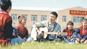 希望,有时需要一首歌来传递。 在松花江畔的黑土地上,它被“90后”教师李平装进吉他琴盒带回家乡,让那些习惯低头看田垄的“村里的孩儿”,望到村庄外的远方。 2016年,李平从黑龙江民族职业学院音乐教育专业毕业。当同龄人奔赴繁华都市,李平选择转身扎根,成为黑龙江省安达市任民镇中心小学的一名乡村音乐老师。 十年过去,当年青涩的毕业生,已成为照亮无数乡村孩子音乐梦想的“种星星的人”,让星光住进孩子的眼睛,把希望之歌唱响。 李平和“村里的孩儿”在学校前的草坪上歌唱(资料图片)。 “就想为孩子们做点儿啥” 李平从小梦想当老师。报到那天,老校长骑着摩托车从土路那头赶来,
